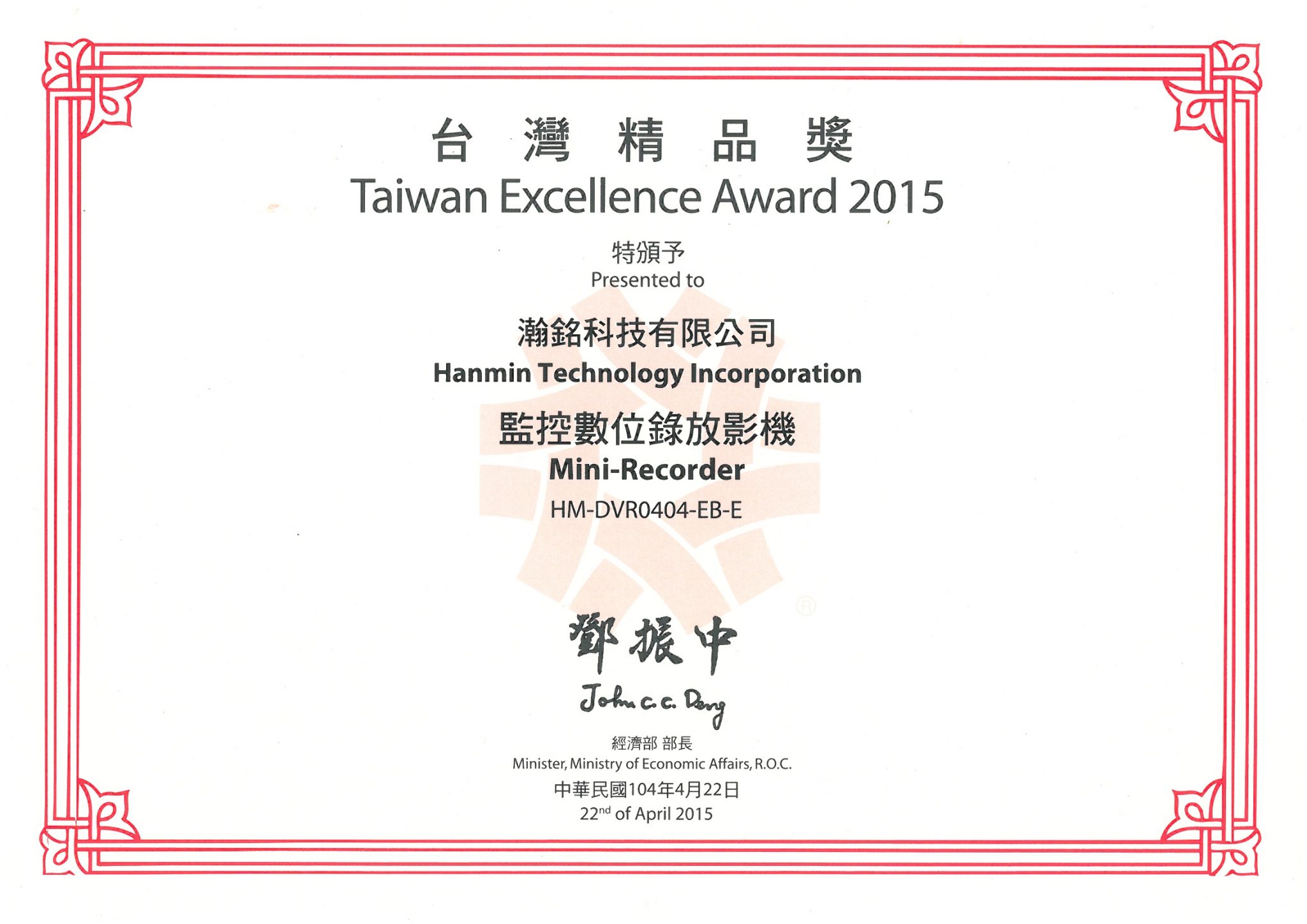 2015台灣精品獎-監控數位錄放影機